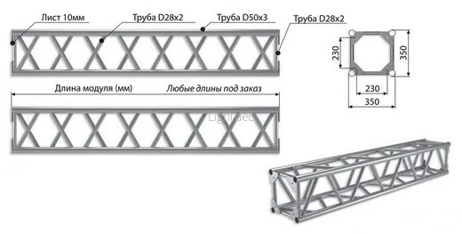 - Длина фермовой конструкции: 5500 мм.