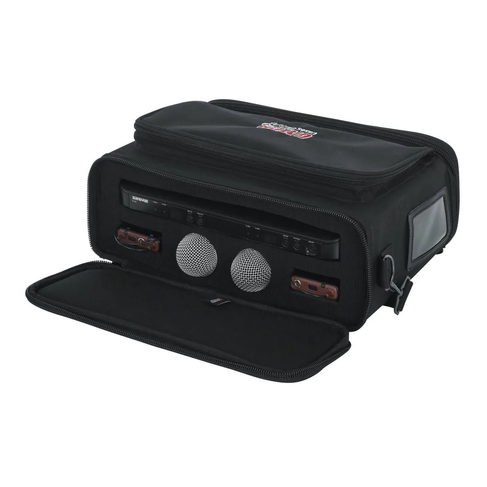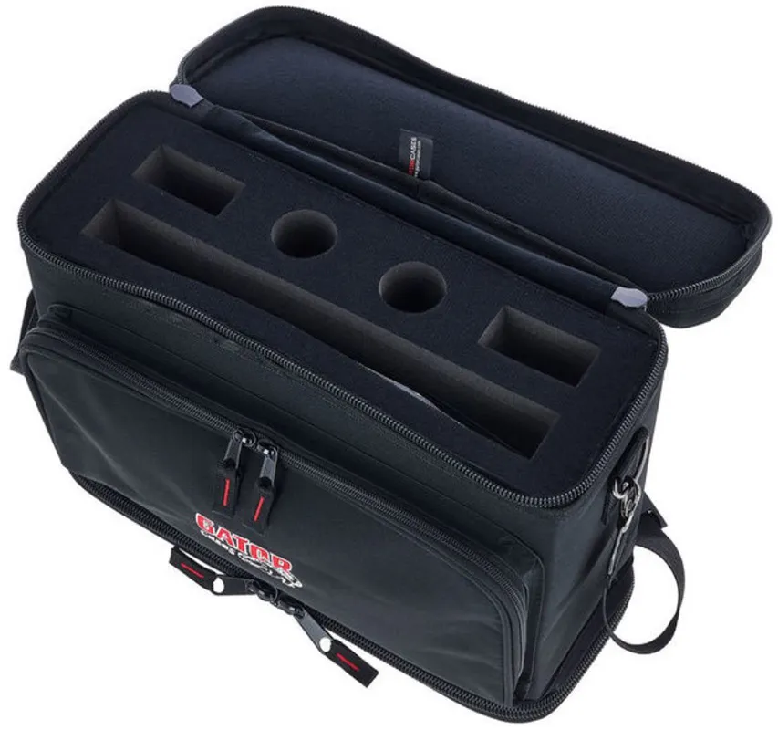 Сумка GATOR GM-DUALW для двойных беспроводных систем Shure BLX. Вмещает один приёмник, два микрофона и два боди-пака. Задний отсек открывается для доступа к задней панели. Защищает от влаги и повреждений. Есть внешний карман и прозрачное окно для визитки. Съёмный ремень. Размеры внутренние: 279,4 х 254 х 134,6 мм. Внешние: 368 х 381 х 139,7 мм. Вес: 0,82 кг.