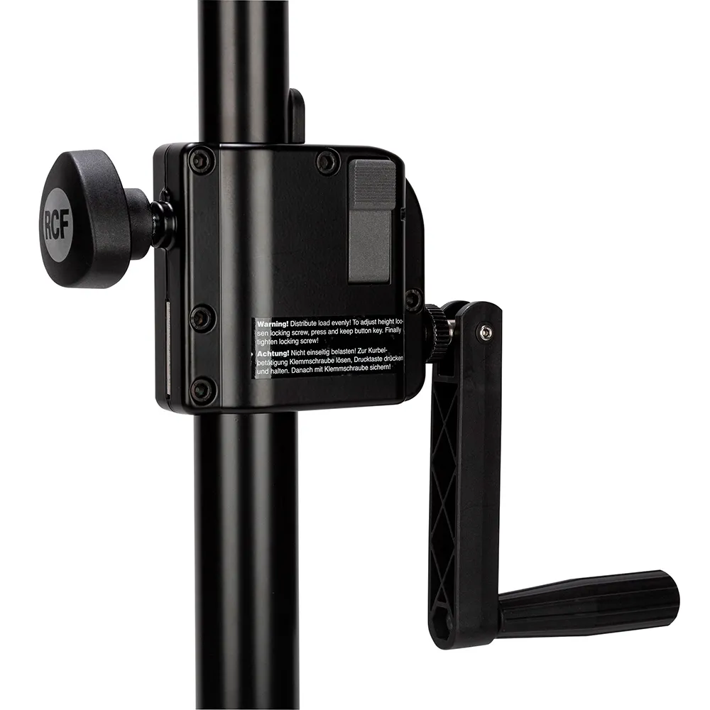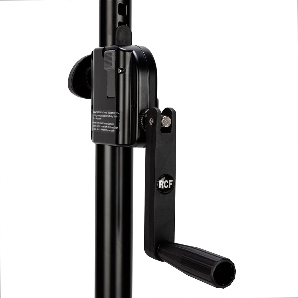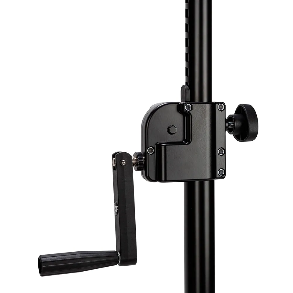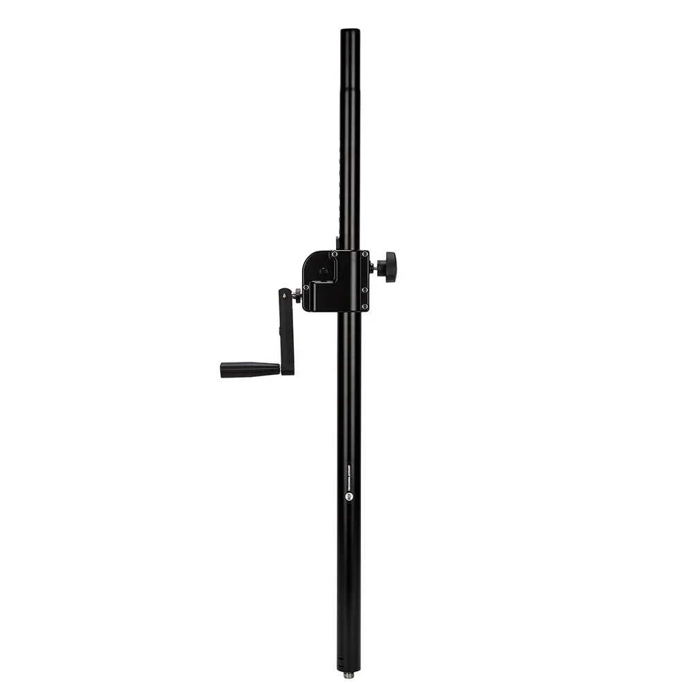 Штатив телескопический для установки громкоговорителей с установочным адаптером диаметром 35 мм на сабвуфер с установочным резьбовым адаптером диаметром 20 мм. Имеет ручной механизм для плавной регулировки высоты подъёма громкоговорителя. Максимальная нагрузка 50 кг. Материал сталь. Длина: мин. 915 мм, макс. 1500 мм.
