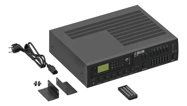 Микшер-усилитель ROXTON MX-360 имеет шесть микрофонных или линейных входов с Phone, XLR и RCA разъёмами. Устройство поддерживает RJ-45 для подключения микрофонных консолей и евро разъём для АТС. Оснащено фантомным питанием, 7-полосным эквалайзером и системой защиты от перегрева. Мощность — 360 Вт.