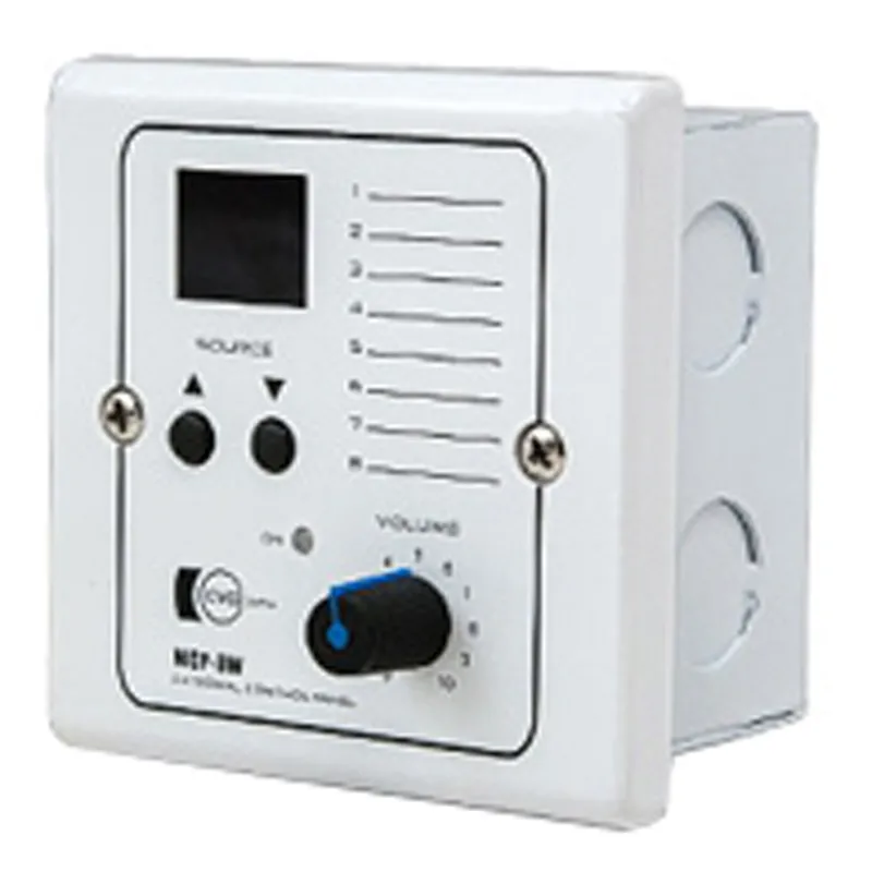 Настенный зональный контроллер CVGaudio WCP-BW предназначен для удаленного управления отдельным каналом аудио-матрицы CVGaudio PMM-380. Позволяет находясь непосредственно в зоне управлять уровнем громкости звукового сигнала и выбором входа аудио-матрицы сигнал с которого будет направлен в данную зону. Всего аудио-матрица CVGaudio PMM-380 имеет восемь зон и соответственно возможно подключение до восьми внешних контроллеров управления. В каталоге CVGaudio четыре вида настенных контроллеров, которые помимо внешнего вида, также отличаются и наличием дополнительных микрофонных и линейных входов непосредственно на лицевой панели контроллера. Единовременно с матрицей могут использоваться любые типы контроллеров CVGaudio. Как правило контроллер устанавливается непосредственно в зоне, которой он управляет – это максимально удобно для управления и контроля. Обычно, для удобства управления, контроллер встраивается в стену или врезается в мебель (ресепшен, барная стойка и так далее). В комплекте поставки имеется металлическая монтажная коробка для установки контроллера в стену и крепежные винты. Лицевая панель CVGaudio WCP-BW выполнена из белого пластика. Управление переключением входов матрицы производится с помощью кнопок SOURCE. Номер выбранного входа матрицы высвечивается на небольшом цифровом дисплее рядом с кнопками выбора входа SOURCE. Управление громкостью осуществляется с помощью вращающегося регулятора. На лицевой панели CVGaudio WCP-BW предусмотрено место, где Вы сможете написать маркером, или приклеить стикер с памяткой по выбираемым с помощью кнопок SOURCE источникам сигнала, подключенным к матрице. Контроллер CVGaudio WCP-BW подключается к матрице по витой паре CAT5E / CAT6 (для удаления более 100 метров). Используется стандартная параллельная распиновка. При удалении контроллера до 70, максимум 100 метров от матрицы не требуется дополнительного электропитания, оно передается от матрицы по витой паре. При большем удалении рекомендуем предусмотреть дополнительное питание со стороны контроллера (БП – DC 24V/1A). Наличие питания на контроллере сигнализируется синим светодиодом ON.Настенный контроллер работает только с аудио-матрицей CVGaudio WCP-BW. Для активации возможности удаленного управления с помощью контроллера необходимо активировать эту возможность – кнопка REMOTE WALL CONTROL для данной зоны должна быть нажата. Это переводит данную зону в режим внешнего управления.