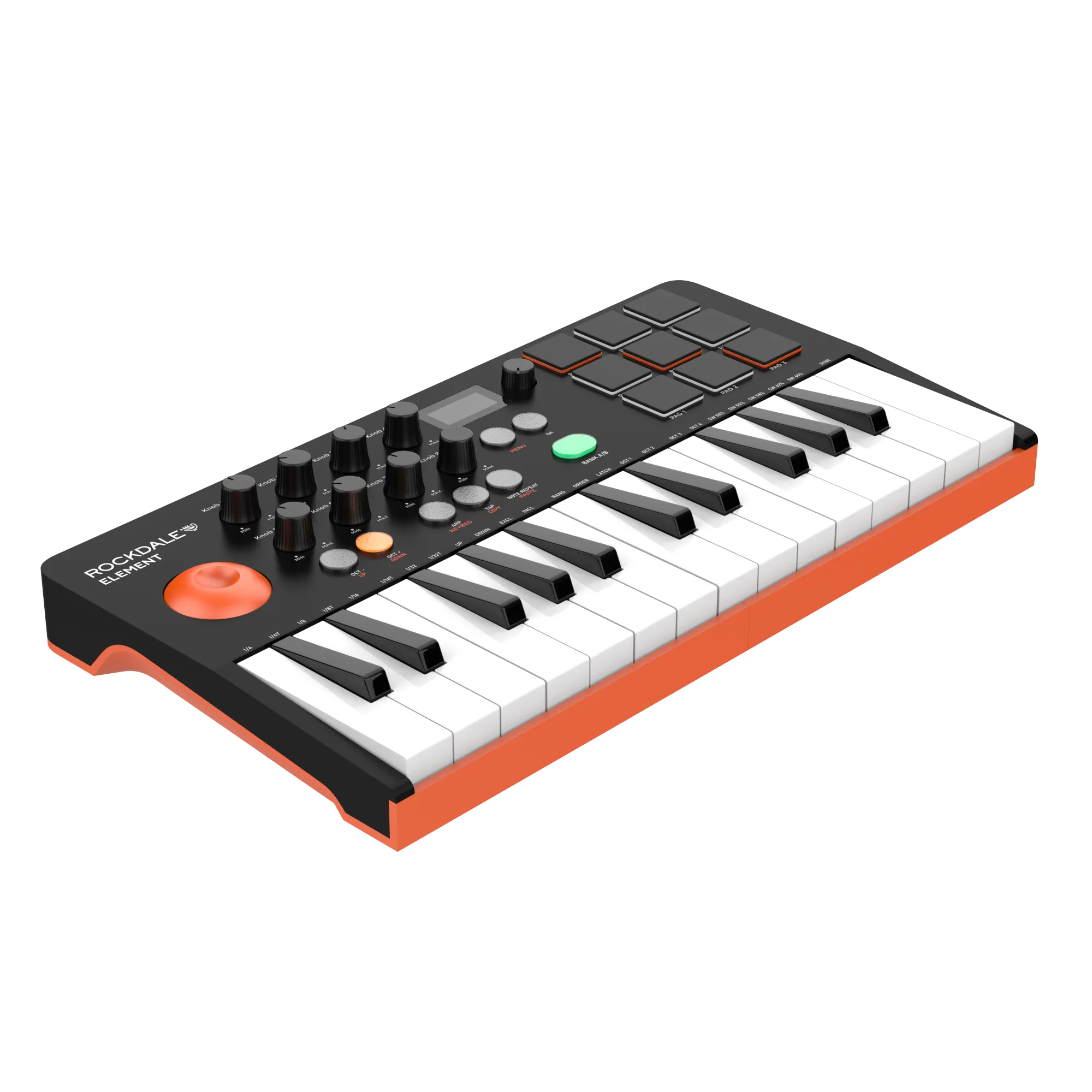 - 9 чувствительных к нажатию пэдов с подсветкой и переключением банков A/B