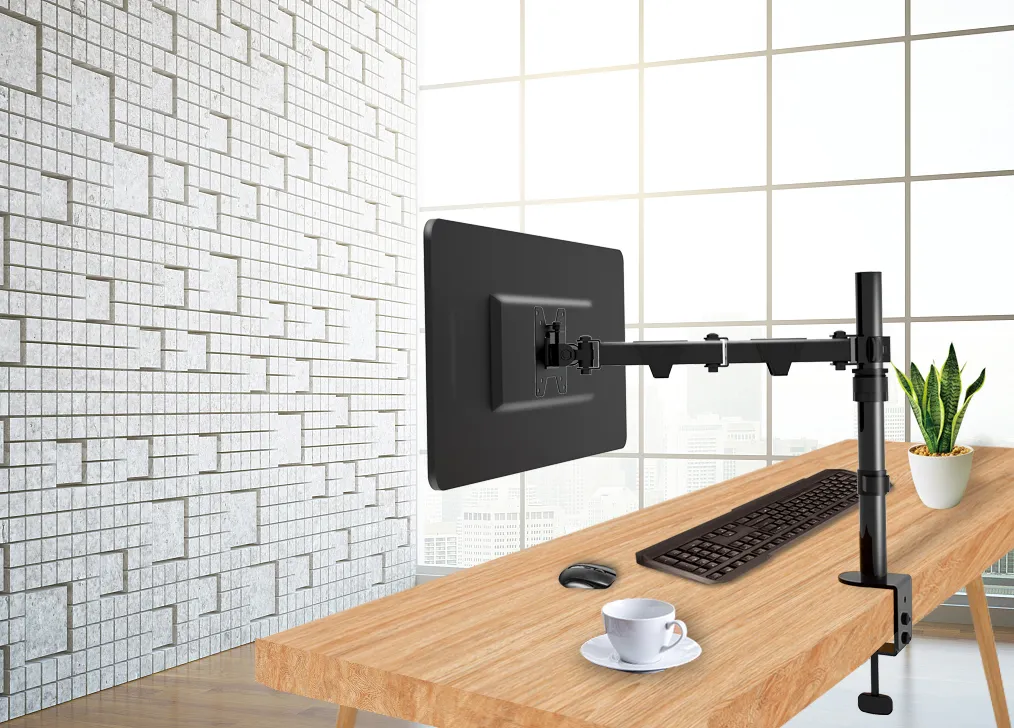 Настольное крепление WDM1-32M предназначено для одного монитора диагональю 14" – 32", отличается нагрузкой до 10 кг и VESA 75 x 75, 100 x 100. Гибкие возможности регулировки позволят установить крепление оптимальным для пользователя образом. Производителем предусмотрена регулировка вращения (360°), наклона (-60°/+60°) и поворота (-90°/+90°). Расстояние от основания составляет 421 мм. Установить крепление WDM1-32M можно двумя способами: с помощью струбцины и через отверстие в столе (сквозной метод). Первый вариант – струбцина – предполагает установку крепления на край столешницы, при этом сверлить дополнительные отверстия для монтажа пользователям не потребуется. Для установки вторым способом необходимо определить оптимальное место для монитора и крепления и просверлить отверстие в столешнице. Благодаря встроенному кабель-каналу гарантируется аккуратный внешний вид конструкции и дополнительная защита кабелей от повреждения.О товаре: