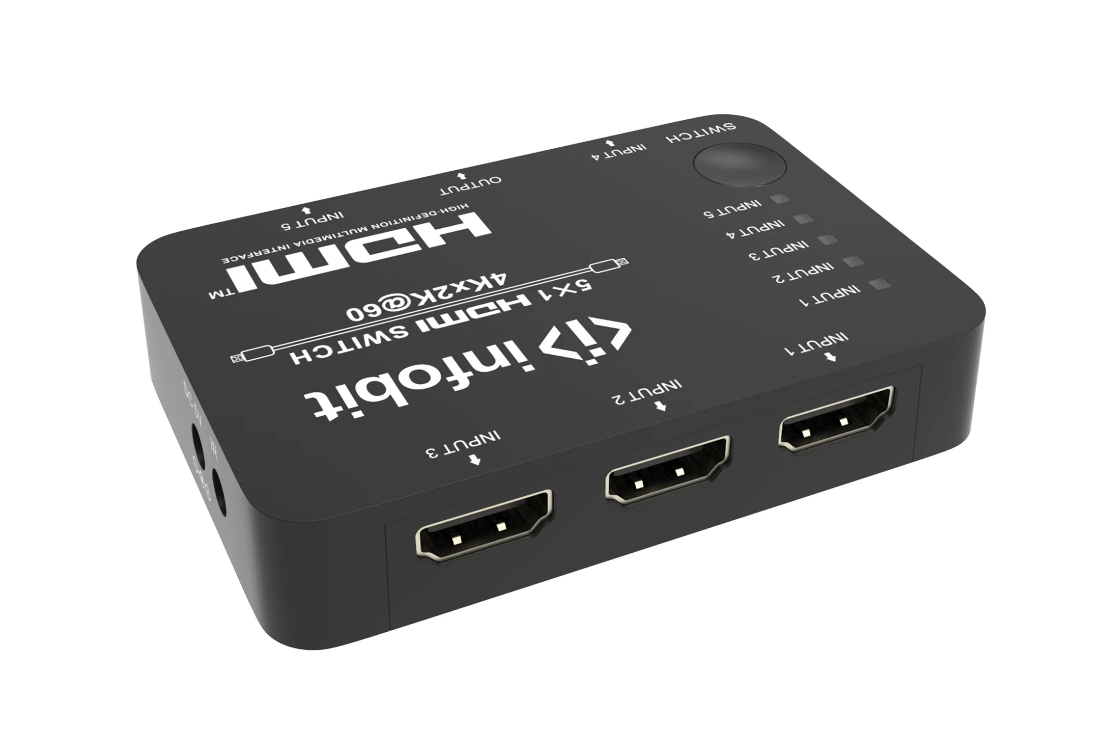 Infobit iSwitch S501 — презентационный коммутатор. Совместим с HDCP 2.2/1.x и DVI 1.0. Поддерживает пропускную способность видео 18 Гбит/с. Есть поддержка HDR, HDR10, Dolby Vision и HLG. Разрешение видео — до 4K2K при 50/60 Гц YCbCr 4:4:4. Есть поддержка 3D видео.