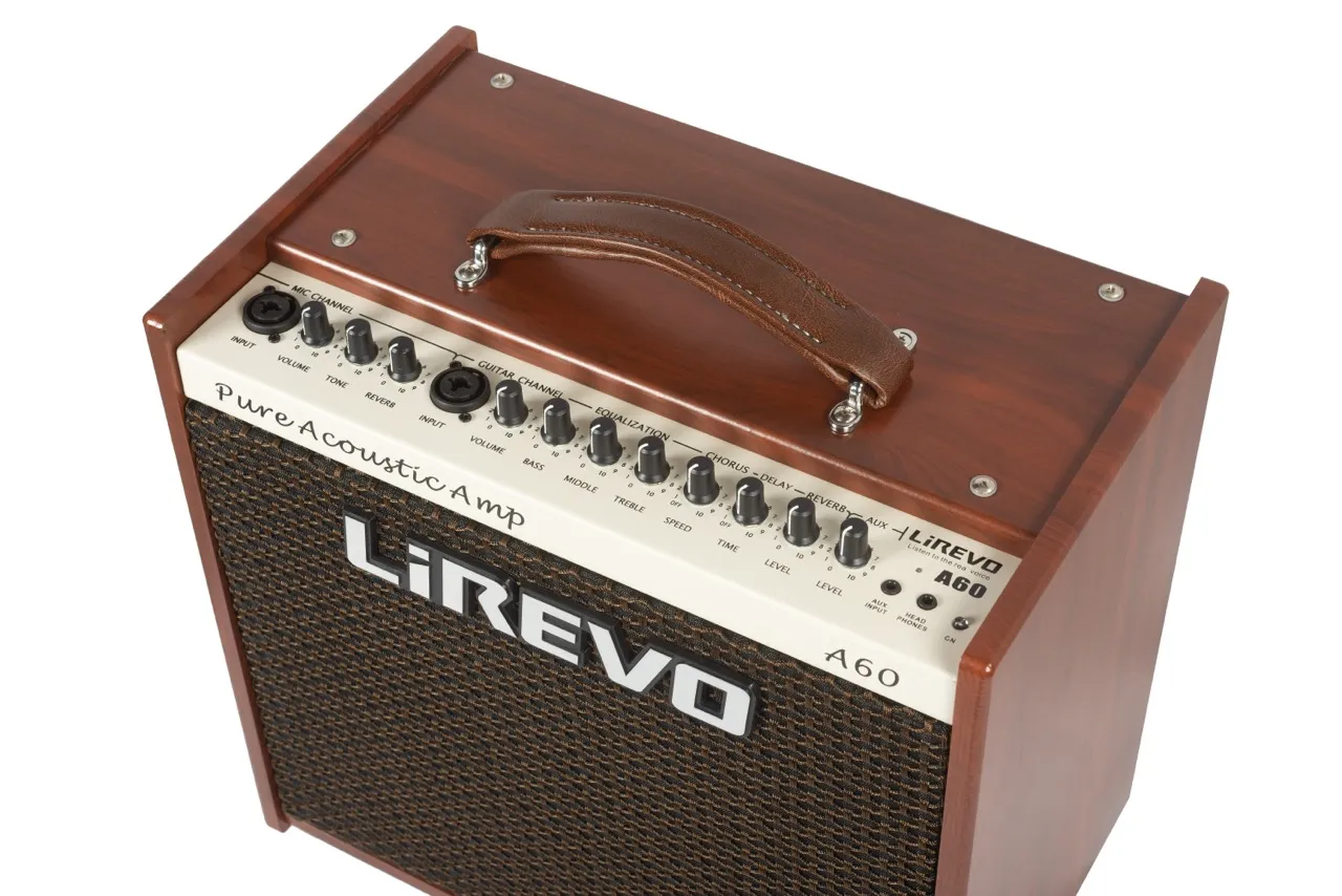 С помощью акустического комбо LiRevo A60 возможно украсить голос певца эффектом реверберации, а игру гитариста - эффектами хоруса, реверберации и делэя. Гибкая система управления позволяет комбинировать гитарные эффекты с настройкой чувствительного 3-полосного эквалайзера, максимально расширяя ди