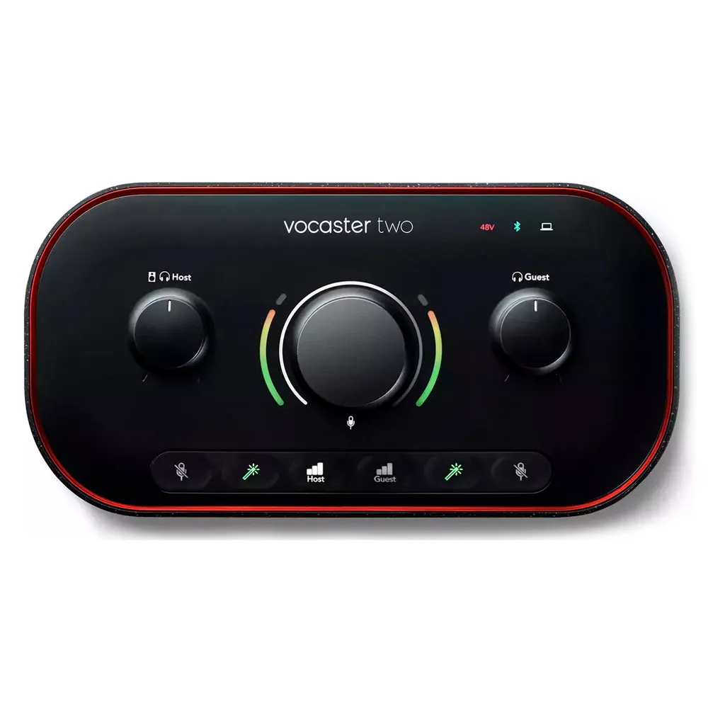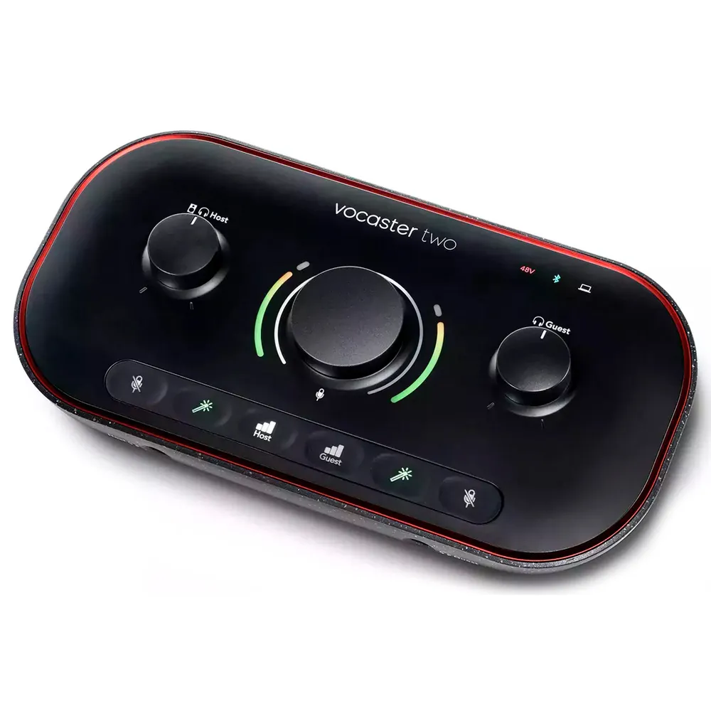 Краткое описание FOCUSRITE Vocaster TwoFOCUSRITE Vocaster Two — это USB-аудиоинтерфейс для создания подкастов. Он обеспечивает высокое качество звука, имеет два микрофонных разъёма и два разъёма для наушников. Vocaster Two поддерживает Bluetooth и позволяет транслировать звук с компьютера через стерео Loopback. В комплекте идут программы Hindenburg LITE, SquadCast Pro + Video, Acast Influencer и Hindenburg Pro. Интерфейс прост в настройке, имеет трёхлетнюю гарантию и поддержку 24/7.