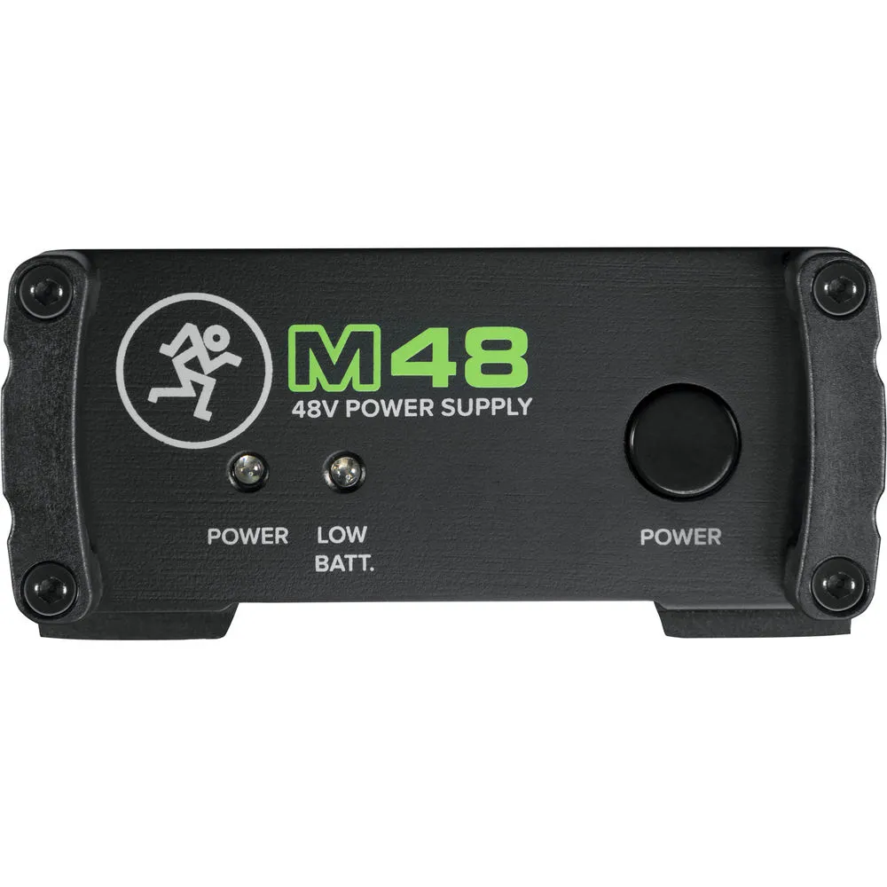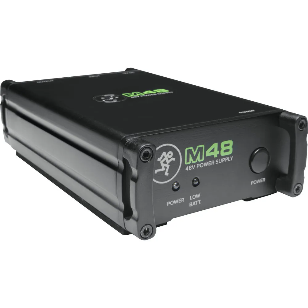 Mackie M48 — источник фантомного питания 48 В для конденсаторных микрофонов. На задней панели — XLR вход/выход. Питание от 9-вольтовой батареи или сетевого адаптера. Светодиоды на передней панели показывают уровень заряда батареи. Прочная стальная конструкция.