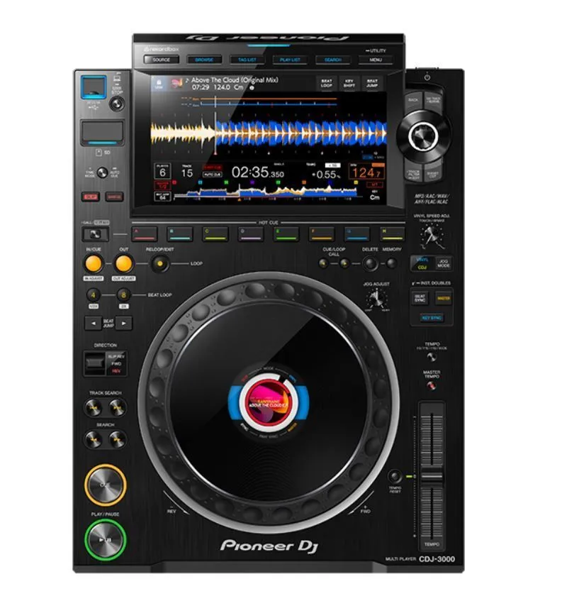 Pioneer CDJ-3000 – диджейский медиапроигрыватель премиального сегмента. В данной модели пользователю доступно восемь кнопок Hot Cue, а также переключатели функций Beat Jump и Key Sync. Джог обеспечивает очень естественные тактильные ощущения, а задержка после касания сведена к минимуму.Навигация и управление параметрами стало легче благодаря новому яркому 9" тачскрину. Проигрыватель тесно интегрируется с программой rekordbox. Параметры сетки, назначение меток, тегов и редактирование плейлистов — все можно делать с помощью тачскрина. Предусмотрен и поиск в библиотеке треков по ключевым словам.