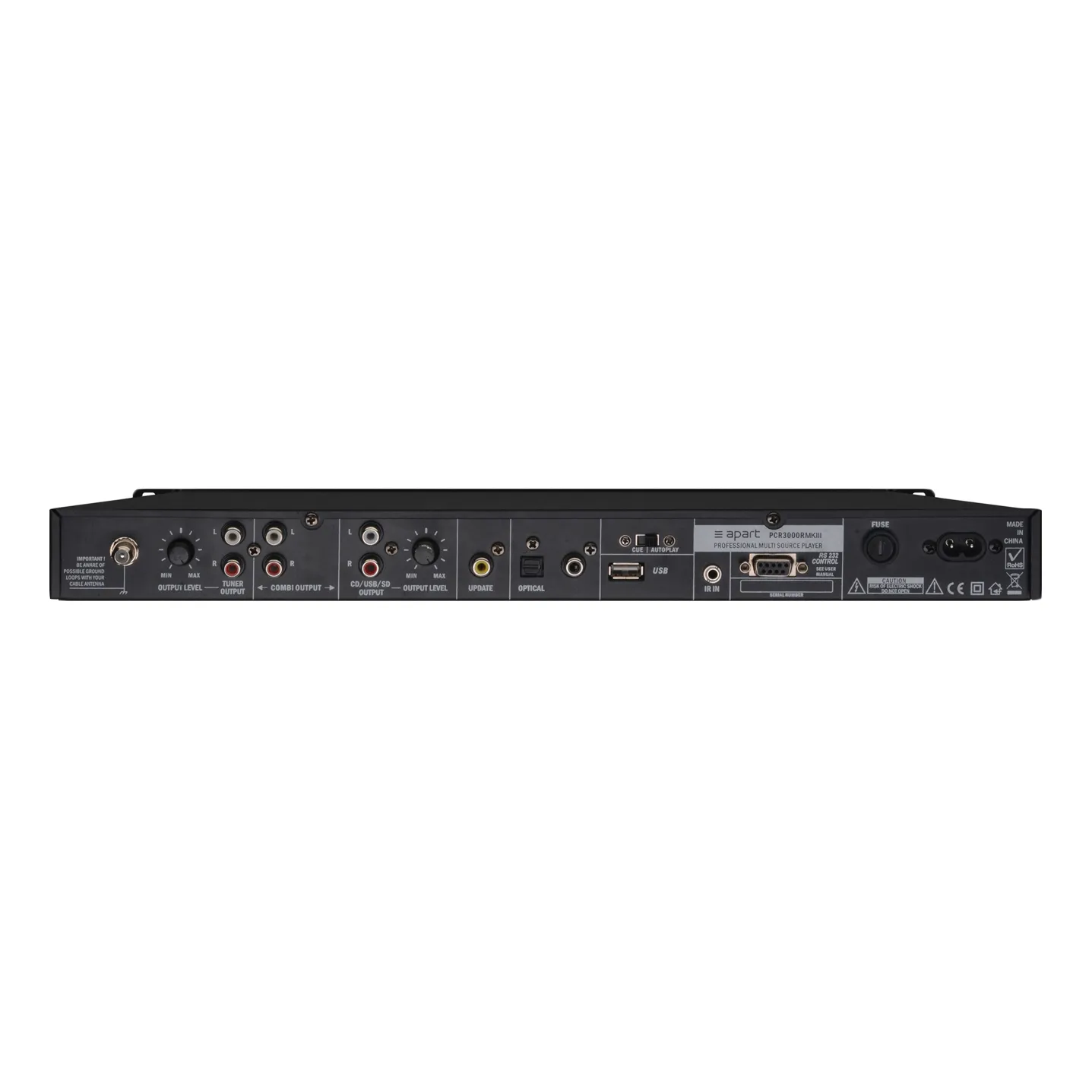 BIAMP PCR3000RMKIII — профессиональный мультимедийный проигрыватель с FM RDS и DAB+ тюнерами. Устройство поддерживает CD, USB и SD, имеет Bluetooth и несколько выходов.