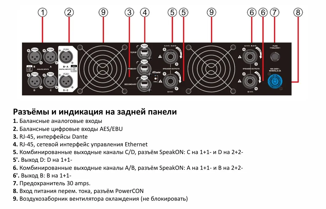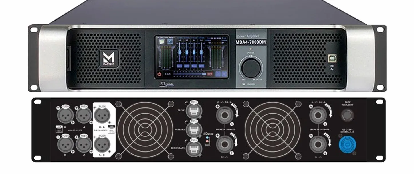 MASTERS MDA4-7000DM DANTE — четырёхканальный усилитель с процессором и DANTE-интерфейсом.